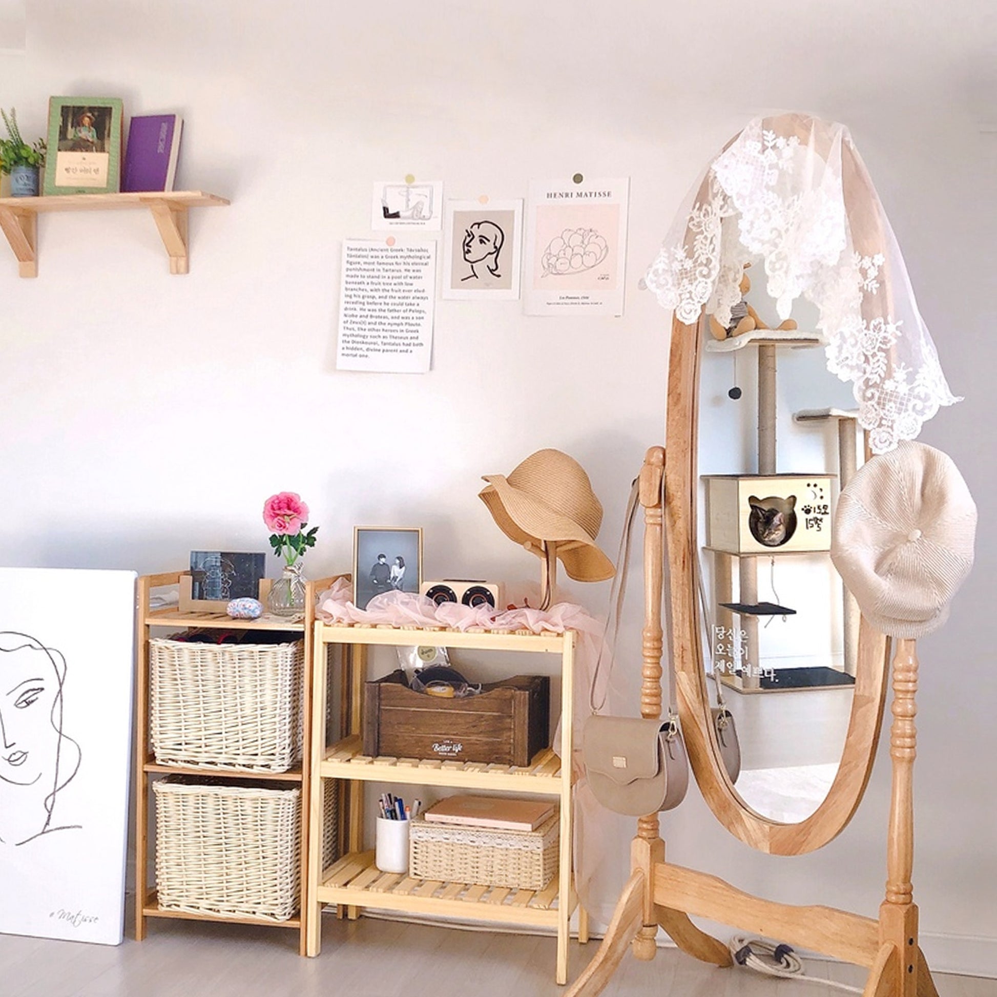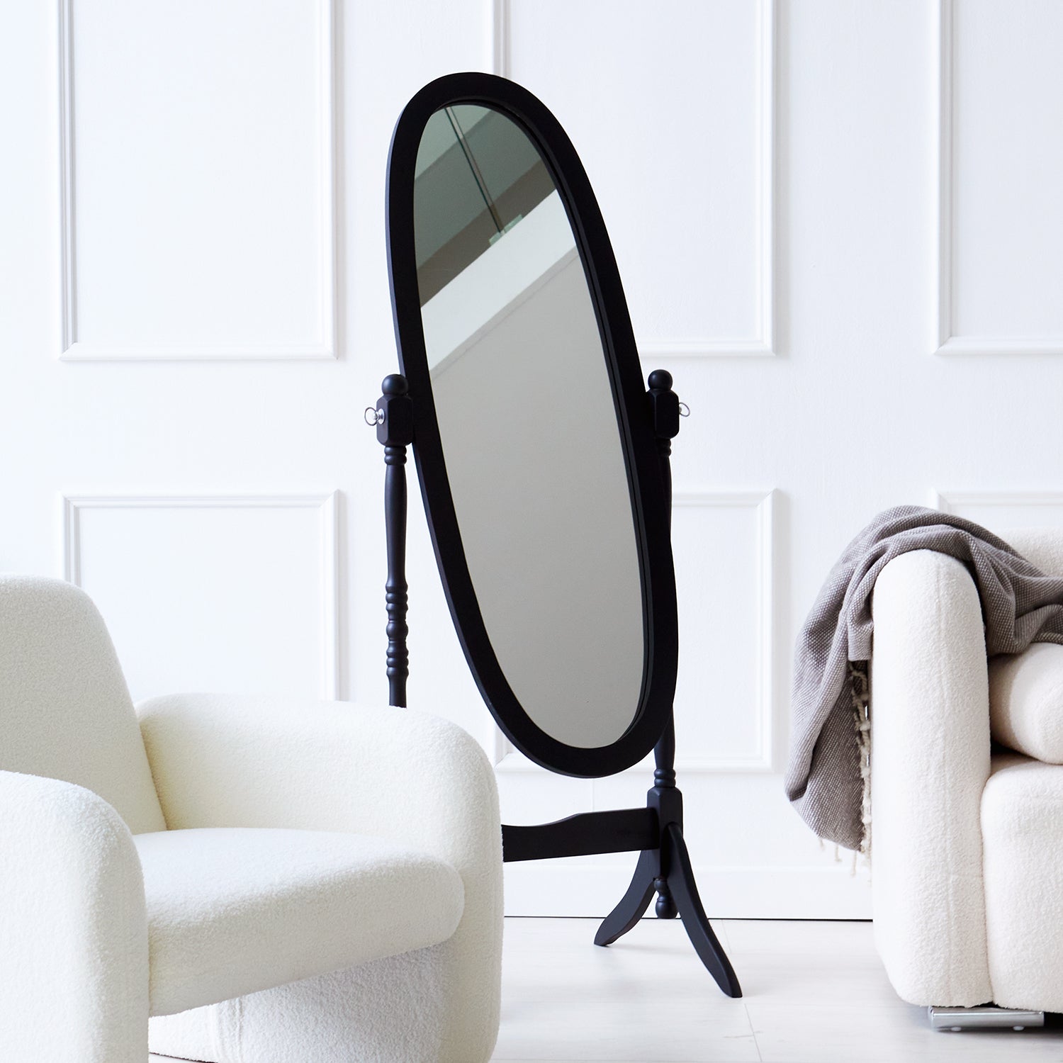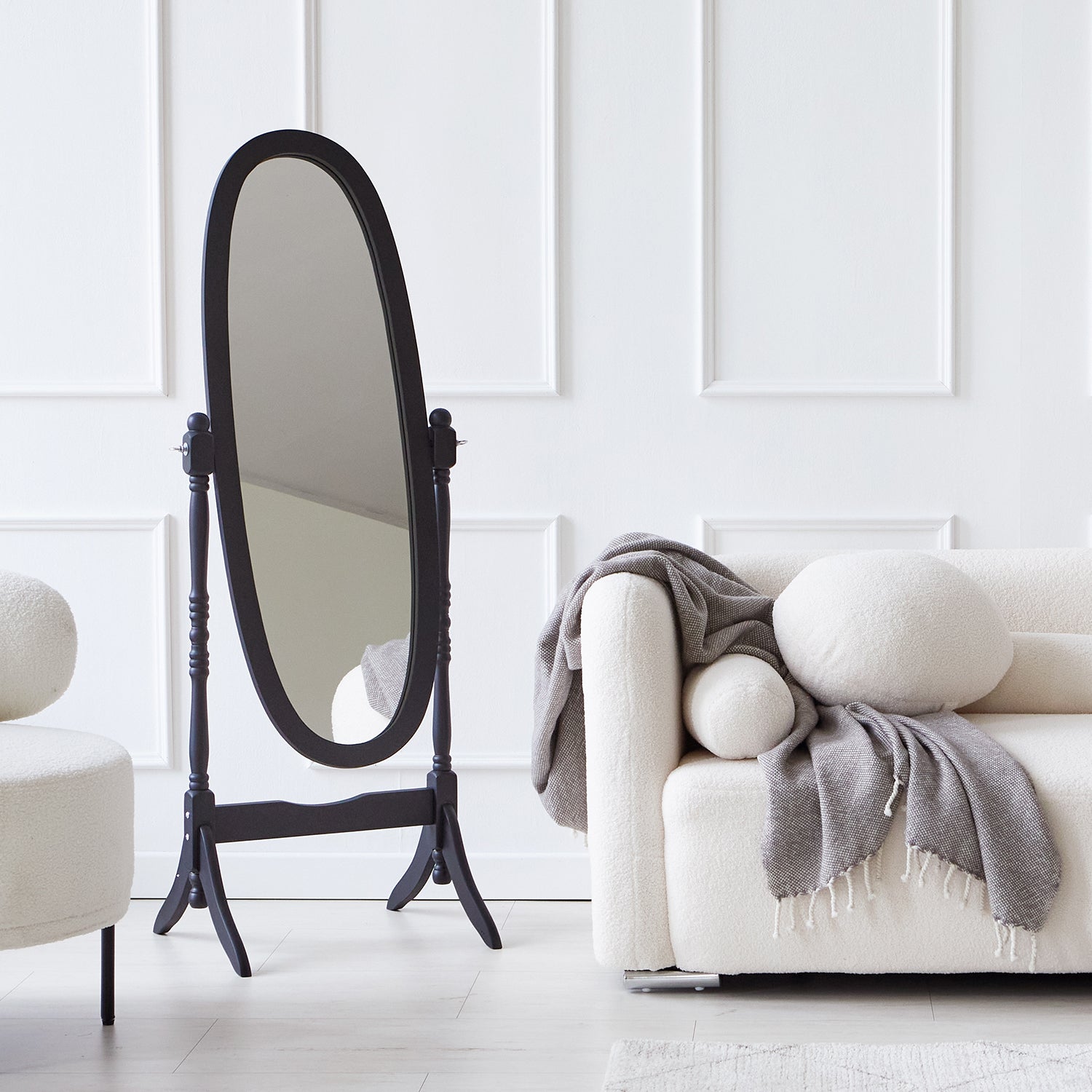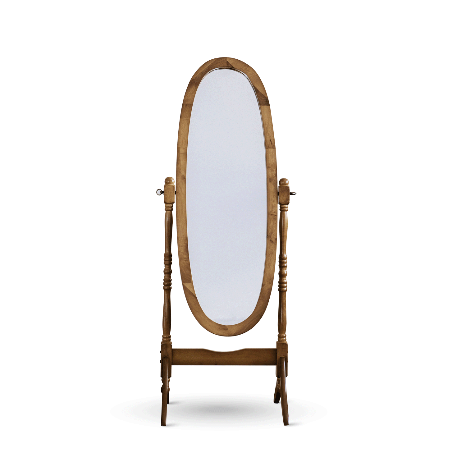 Livinia Ashley wooden mirror is an antique design free-standing floor mirror with tilting oval shaped full length mirror. This model has surpassed cumulative sales volume of more than 160,000 units for the past five years. The frame is constructed of solid rubber wood with handworked pillars to provide the durability and the stability it needs. Choose from our various color options to add style to your interior.